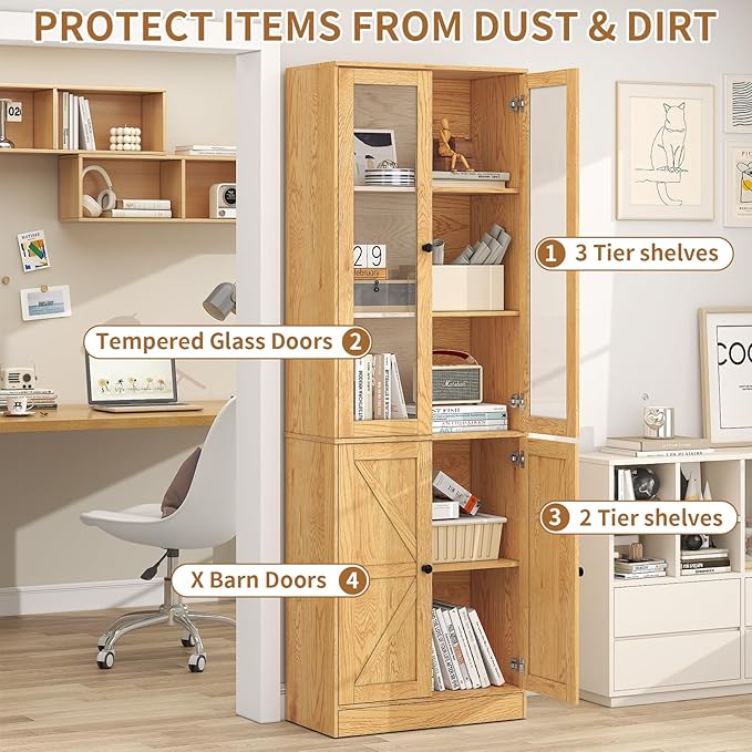 - 【Multifunctional Use】- The bookshelf with storage is designed with wood grain style and minimalist aesthetic, it seamlessly fits into any decor style. These wooden bookcases can be used as display cabinets, office bookshelves, library bookcass, kitchen pantry cabinets, etc