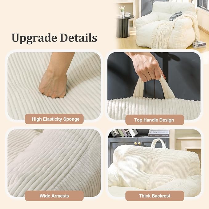 - No Assembly: This bean bag chair is pre-filled, you do not need to fill it yourself. t is shipped compressed and needs to be cut open and packaged, tapped and shaken to promote rebound, and waited about 24 hours to return to its original shape. If you have any questions, please to contact us at any time, we will be at your service 24 hours a day!
