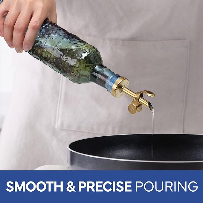 • Beautiful and Functional - Our colored glass oil dispensing bottles, with elegeant colors, gold tops and gold wire rack, will elevate your kitchen. Don't use just any oil bottle, upgrade the way you cook. That's our mission.