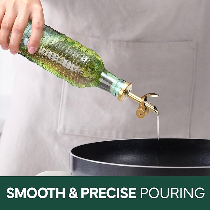 • Beautiful and Functional - Our colored glass oil dispensing bottles, with elegeant colors, gold tops and gold wire rack, will elevate your kitchen. Don't use just any oil bottle, upgrade the way you cook. That's our mission.