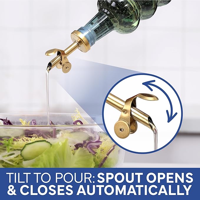 • Auto Flip Spouts - Drip free and mess free with our auto flip spounts. You'll get precise and smooth dispensions of your favorite oils and vinegars.