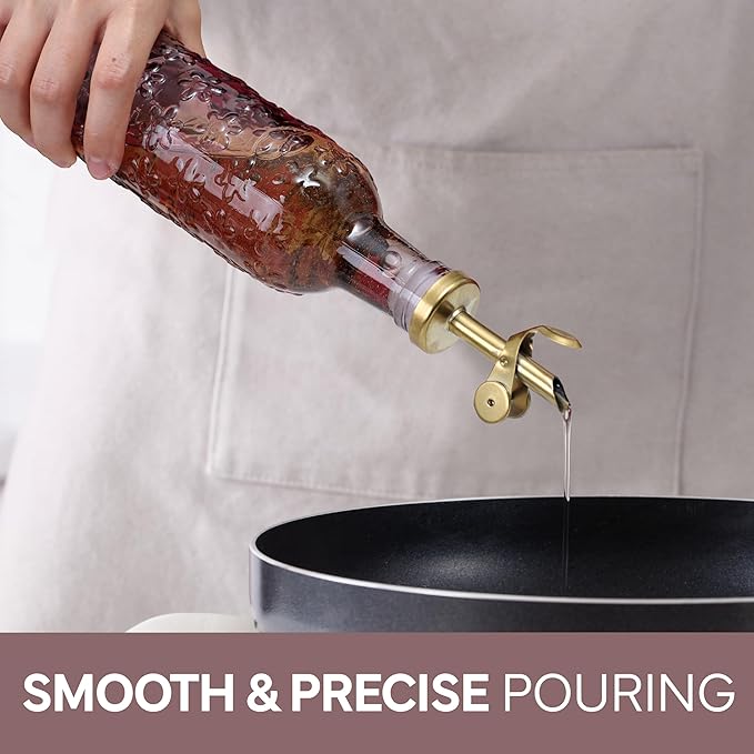 • Perfect Amount - Each bottle holds 500ml or 17oz of a variety of oils and vinegars. From your favorite EVOO, avocado oil, balsamic vinegar dispenser and more.