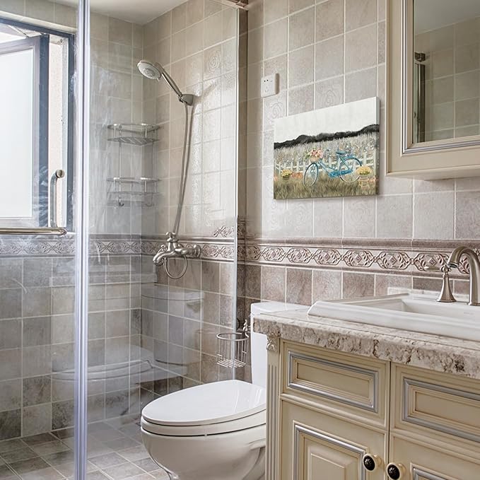 - Ready to Hang with Ease. Pre-stretched on a sturdy wooden frame, this vintage bathroom wall art comes ready to hang with all necessary hardware included. Its versatile design allows you to hang it on the wall or display it on a shelf, and its lightweight construction ensures easy handling and placement.
