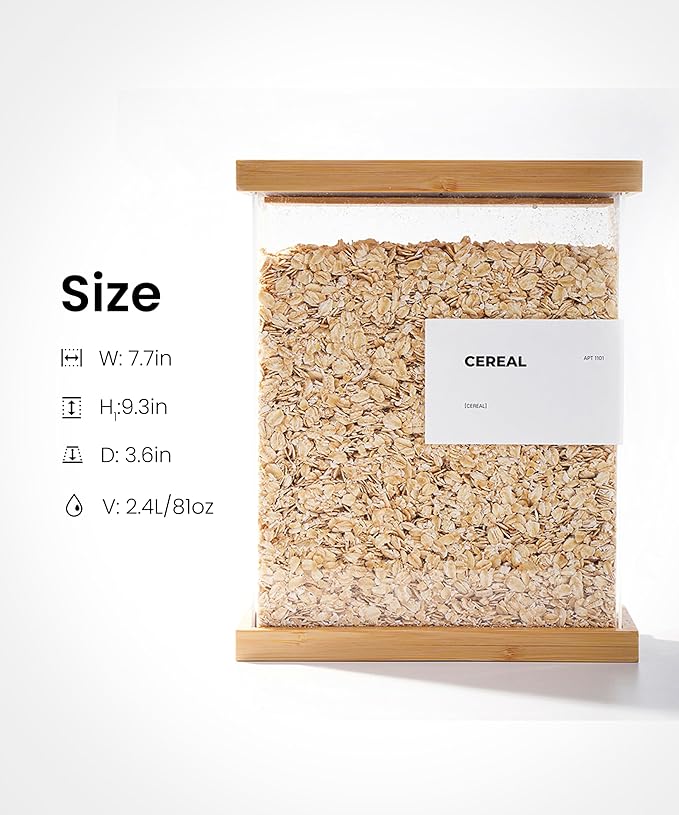 • Versatile Kitchen Organizers and Storage: Ideal for organizing cereals, rice, flour, and snacks with this bamboo food dispenser.