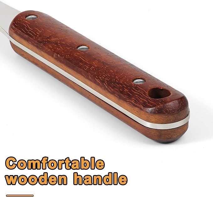 • Solid Kitchen Utensils: Wooden handle combined with polished mirror 304 stainless steel,combines sturdiness and aesthetics, the production process is more complicated, but it's worth it