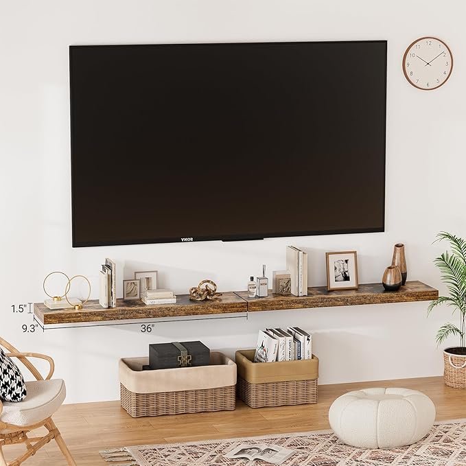 - 【Longer Design】Our pretty 36 inch wall shelves are 36"W x 9.3"D x 1.5"H.Our dark brown floating shelves is longer than traditional designs and can hold more items.The 36 inch floating shelf optimize wall space,helping organize essentials without taking up floor space in your home.
