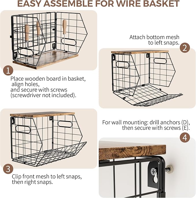 - 【Effortless 3-Minute Assembly】Our stackable wire baskets require no tools-just fold,snap together,and secure with the included screwdriver.Perfect for pantry organizers or kitchen countertop storage,ready to use in minutes!