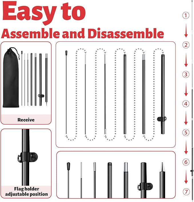 - Easily assemble and disassemble: Just assemble the flagpole, insert the open flag then place them into the ground stake. Then insert the H-shaped stake into the real estate signs and finished. Easily disassemble and store, and it can be used as many times as you want