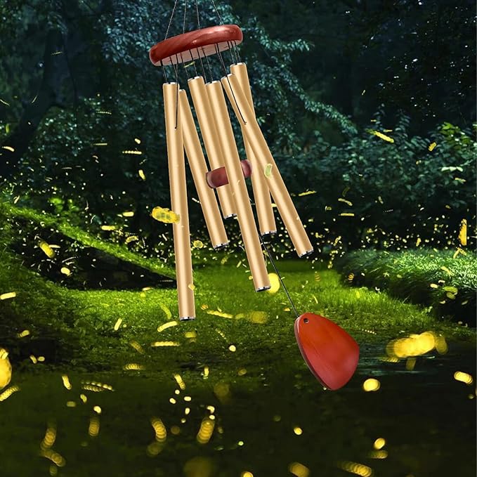 - ♬【Premium Material】Through repeated tests and experiments on a large number of materials, due to the characteristics of pine wood is not easy to crack and decay, we chose pine wood as our wood material. The main body of the wind chime is made of aluminum tubes and chamfered with spray paint, which is rust-proof and sturdy, making the life of the wind chime much longer and more beautiful and durable at the same time.