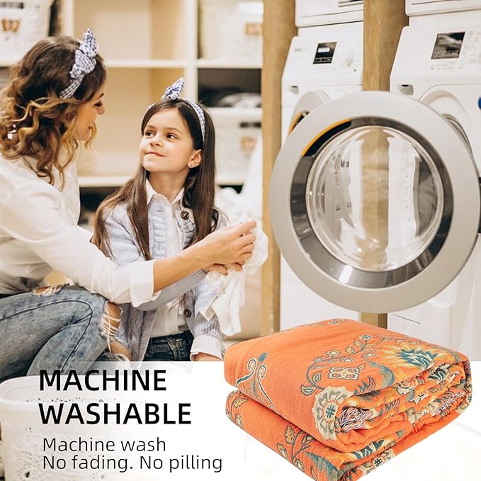 • ❥ super soft & cozy: Our bed blankets are made of 100% premium cotton fabric, warm and cozy to the touch. Sizes are available in 60" x 80" (weighing 2.54 lbs/1165 g), 80" x 90" (weighing 3.74 lbs/1696 g), 91" x 98" (weighing 5.29 lbs/2400 g). This beautiful cotton blanket is perfect for all seasons.
