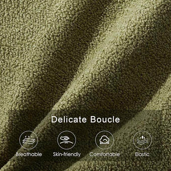 43.3" Bedroom Bench, Upholstered Entryway Bench, Modern End of Bed Ottoman with Solid Wood Legs and Adjustable Foot Pegs for Entryway, Dining Room and Living Room (Green Boucle)