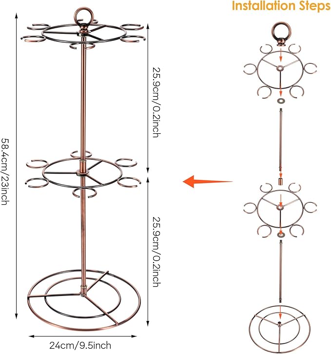 • Easy to Assemble and Detachable. The stemware rack stand can be fast installed without using any tools. And it's detachable, can be easily carried and moved, easy to clean.