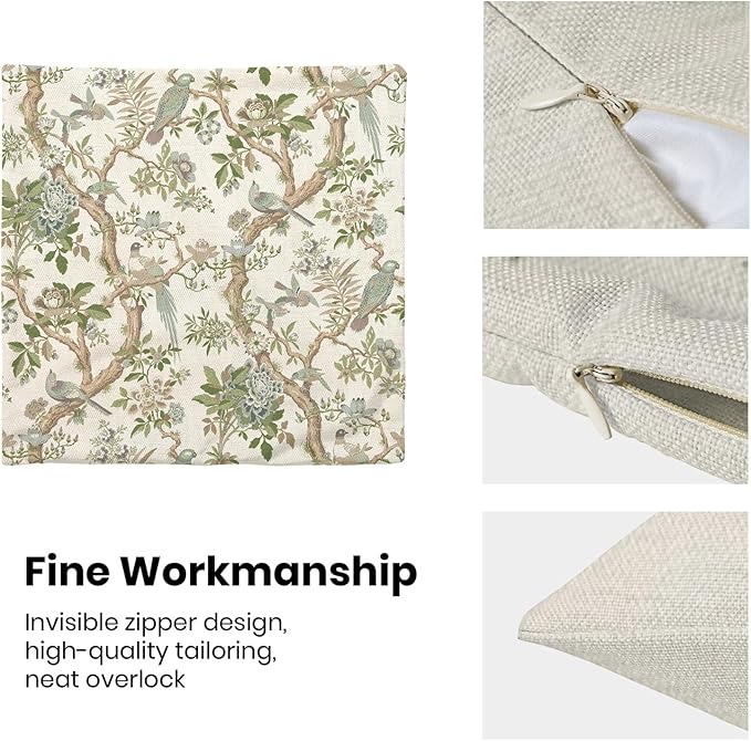 - 【Square Pillow Covers Size】 Chinoiserie flower birds pillow case set includes 2 pcs of farmhouse couch pillow covers (NO Pillow). Home decor farmhouse pillow covers measures 16x16 inch/ 40x40 cm. All the floral decor throw pillow covers have a hidden zipper. It is easy to insert or remove the pillow core to replace the spring pillowcase. Easy to clean and wash, sturdy and not easy to damage.