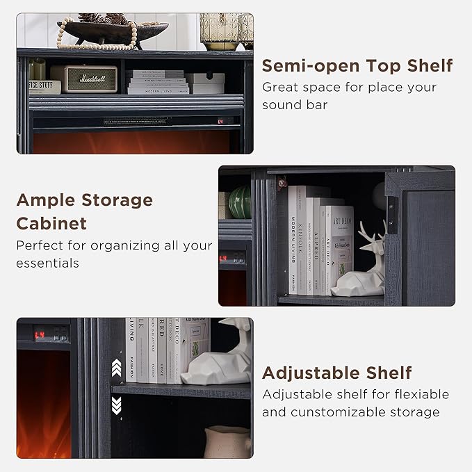 - Buy with Confidence: Enjoy a seamless installation with clear, easy-to-follow assembly instructions and labeled parts for quick identification. The fireplace entertainment center ships in 2 separate packages, carefully secured in sturdy boxes with foam and wood protective panels to ensure safe delivery. Please note that the packages may arrive at different times