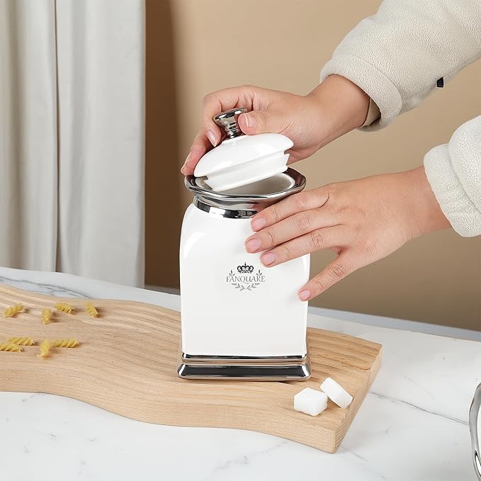 • FEATURE: With a simple square look paired with elegant ruffles, this set of ceramic containers can be a beautiful decoration in your home. With lid, this kitchen jar protects sugar from dust, just a fabulous partner for your daily drink