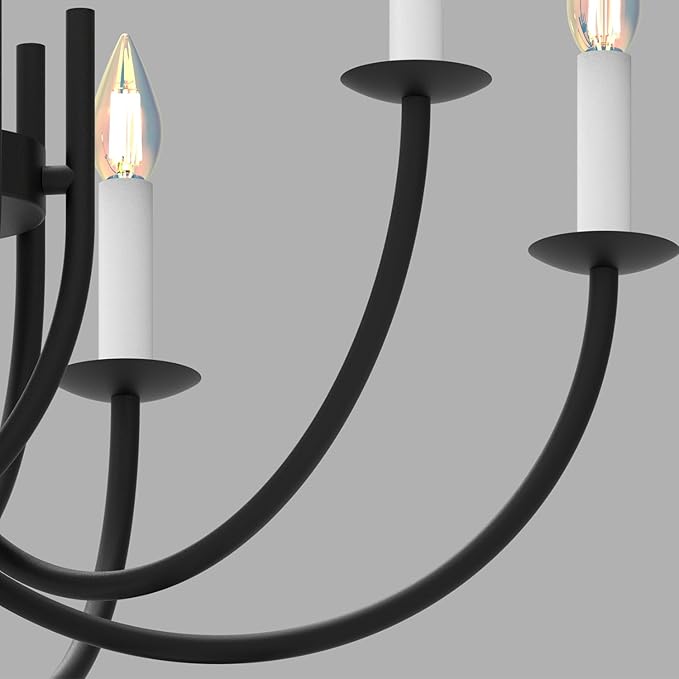 • 【Easy to Install】This round black chandelier uses the LED E12 lamp socket. After you open the package, you only need to assemble the dining room chandelier according to the installation manual, and then install the modern candle chandelier on the 110V ceiling.