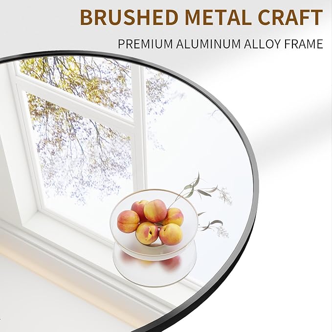 • Modern Brushed Frame Design: 48-inch black circle mirror is crafted of an aluminum alloy metal sleek frame, making it ideal for bathroom mirror, entrance mirror, vanity mirror, living room mirror