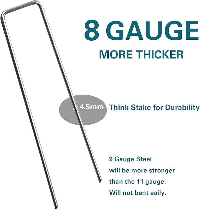 • WIDELY USE: Garden Staples are suitable for weed barrier fabric, Christmas light stakes, fences, tents, hoses, wires, etc., and can secure and install a variety of items.