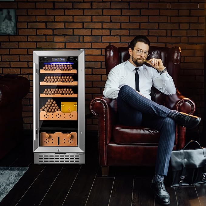 Electric Cigar Humidor,15 Inch Upgraded Large Capacity Electric Cigar Cabinet with Powerful Compressor, Digital LED Screen, Safety Lock,Smart Temperature Control,Father's Day Gift for Men