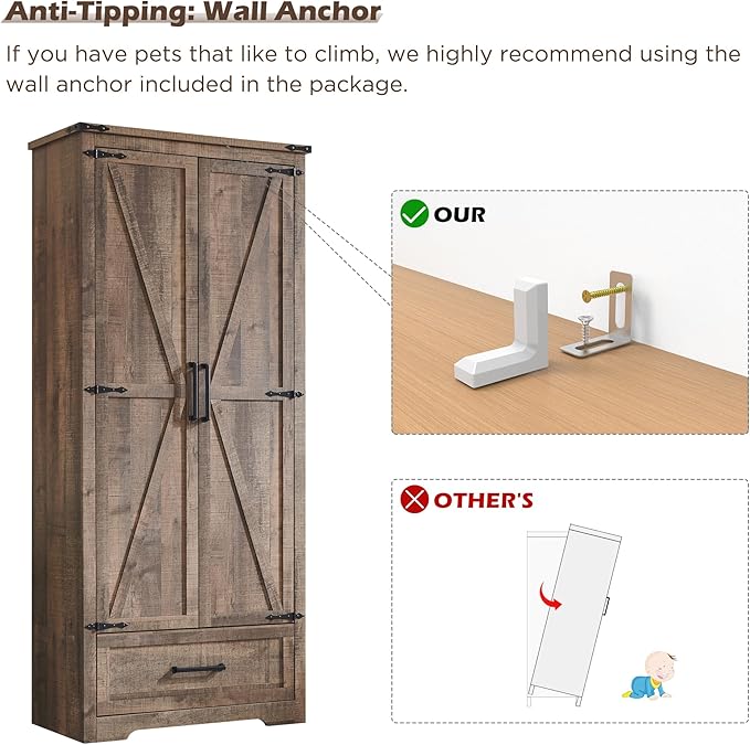 - Sturdy and Safe Design: Crafted from high-quality engineered wood and metal, this cabinet is built for stability and longevity. It includes an anti-tip safety kit for secure wall mounting, ensuring stability even in households with pets. Enjoy peace of mind knowing your familyâs safety is a priority