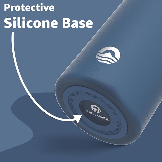 Chill Oasis Water Bottle | Compatible With Popular Flavor Cartridges | BPA Free, Leak Proof, Double-Walled Vacuum Insulated Stainless Steel, and Dishwasher Safe | Cold for 24 Hours (Navy, 12oz)