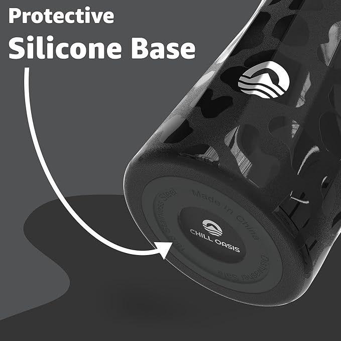 Chill Oasis Water Bottle | Compatible With Popular Flavor Cartridges | BPA Free, Leak Proof, Double-Walled Vacuum Insulated Stainless Steel, and Dishwasher Safe | Cold for 24 Hours (Leopard, 32oz)