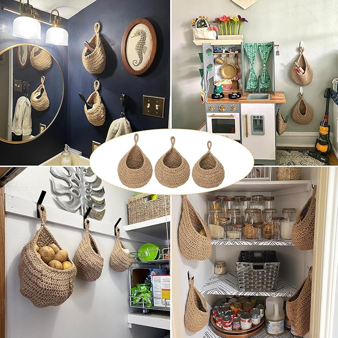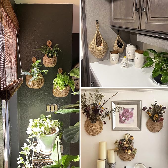 • 【Durable Jute Material】 Crafted from strong Hemp Rope, these hanging baskets for organizing are designed for long-lasting use. The natural material adds a rustic and earthy touch to any space.