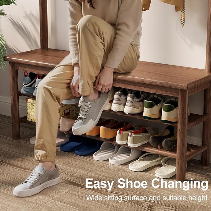 • [3-in-1 Coat Rack] Our hall tree combines three functions in one: hooks for coats and bags, a shoe bench for changing shoes, and a shoe rack to organize your footwear—this freestanding coat rack brings you a tidy, convenient, and cozy entryway at home