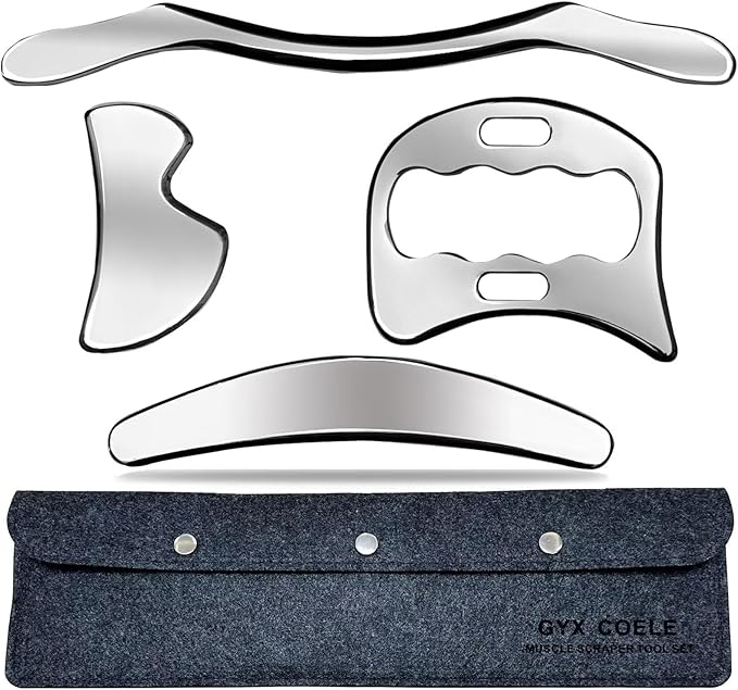 4 in 1 Stainless Steel Gua Sha Muscle Scraper Tool, Professional IASTM Physical Therapy Tool Set for Massage and Scraping