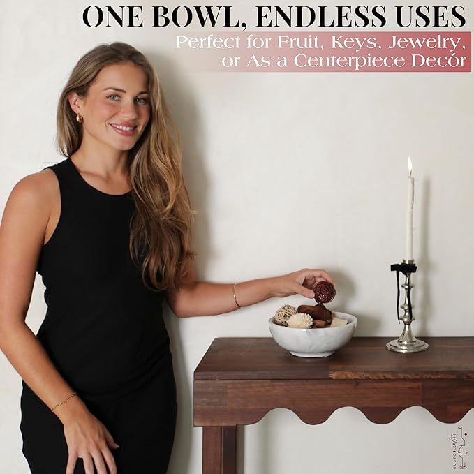 • A Stone Bowl Decorative Enough to Display: At 8" wide and 3" tall, this centerpiece bowl is the perfect size for just enough impact without taking over your space. You'll love how these marble bowls blend into your home decor, from entryway to nightstand