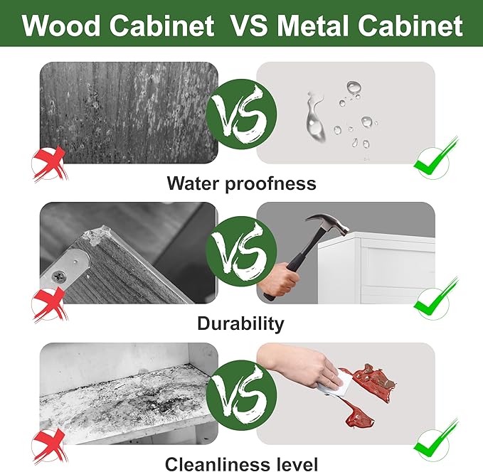 • 🛒【Design to Prevent Tipping】: The metal cabinet has an anti tipping configuration and can be fixed on the wall to prevent the cabinet from tipping over during use.