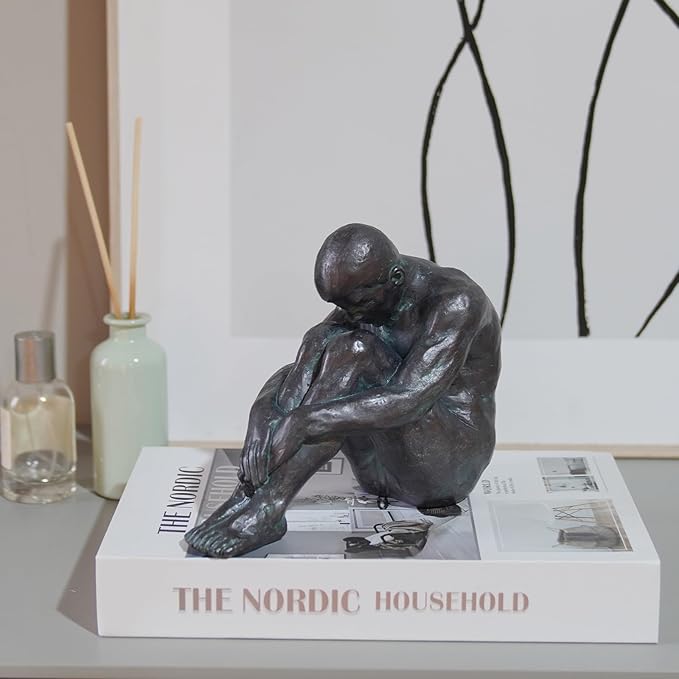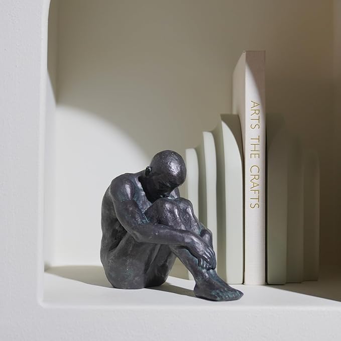 • BOOKSHELF DECORATIVE OBJECTS: Abstract modern sitting man statue made of resin, strong structure and high quality, professional casting, meticulous, no odour.