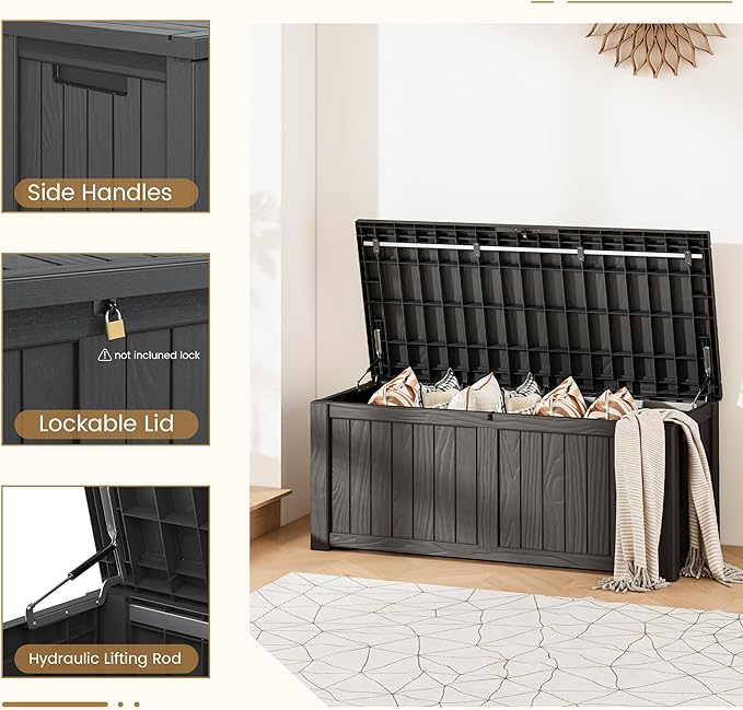 - Multi-Functional Use - Beyond its primary function as a storage solution, this versatile box doubles as a sturdy patio seat or table, supporting up to 200lbs. Whether you need extra seating for guests or a convenient surface for outdoor activities, this box is perfect for both indoor and outdoor use