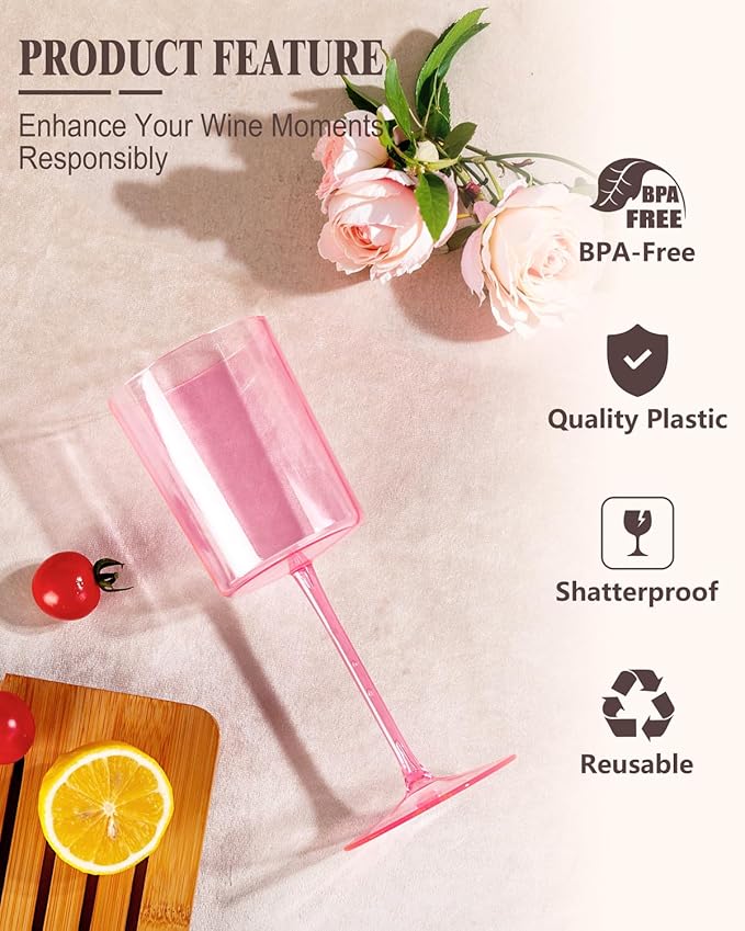 Ciaell 12 Pack Pink Plastic Wine Glasses - 14Oz Plastic Wine Glasses with Stem - Disposable Stemmed Wine Glass for Parties & Weddings & Outdoor
