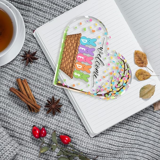 Funny Easter Bunny Decor Desk Decor Acrylic Heart Sign Easter Decorations Easter Gift Acrylic Heart Plaque Box Sign for Home Farmhouse Kitchen Bathroom Shelf Table Decoration