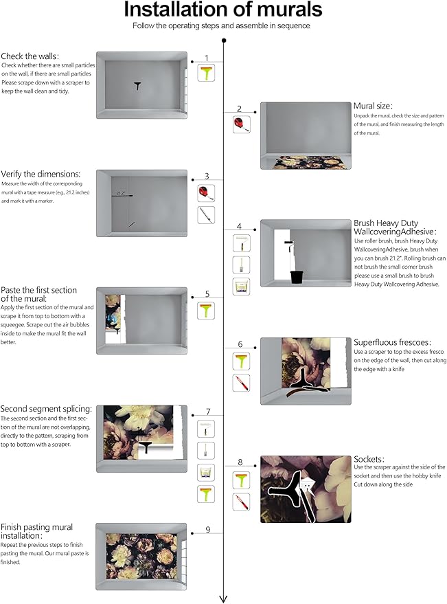 • Construction Installation: Each part of the mural is marked with a serial number underneath, no overlap, direct docking, in order. (Please refer to installation instructions)