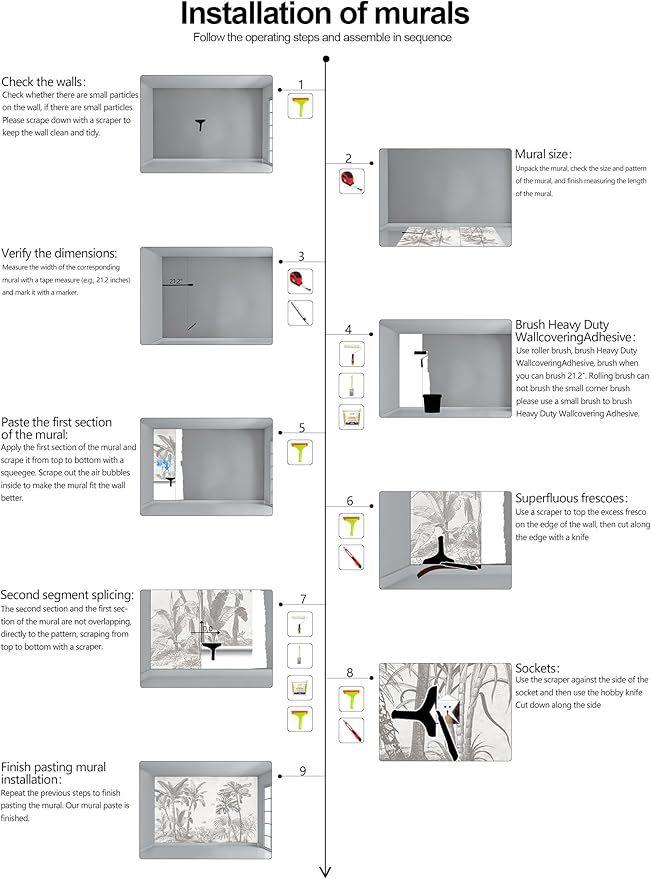 • Warm tip: This mural is not peel and stick, you need to buy your own glue, it is recommended to use Heavy Duty Wallcovering Adhesive.