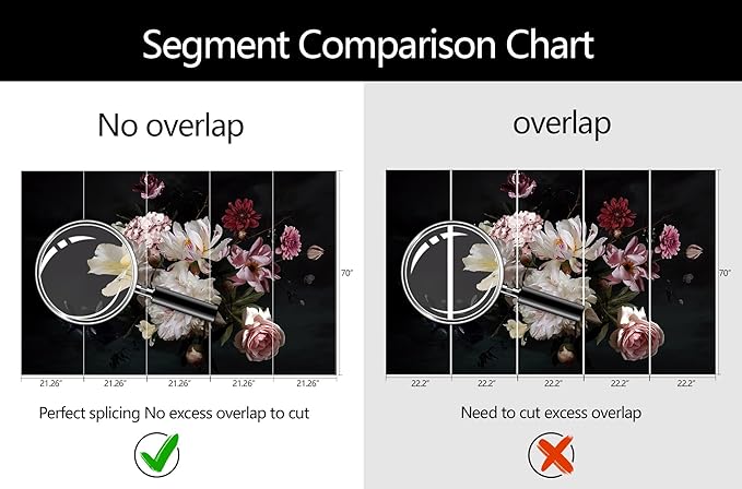 • Mural Size: The total size of this mural wallpaper is 106" x 70" / 270CM x 178CM (W x H), cut into 5 pieces, each measuring 21.26" x 70", for easy installation.
