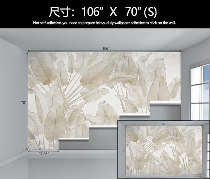 • Mural Size: The total size of this mural wallpaper is 106" x 70" / 270CM x 178CM (W x H), cut into 5 pieces, each measuring 21.26" x 70", for easy installation.