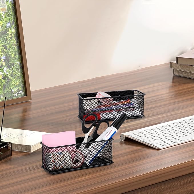 6.29'' × 2.28'' × 2.48 Black Magnetic Basket for Refrigerator Magnetic Pen Holder Locker Organizer for Home Office Accessories Magnetic Basket for Whiteboard,Set of 2