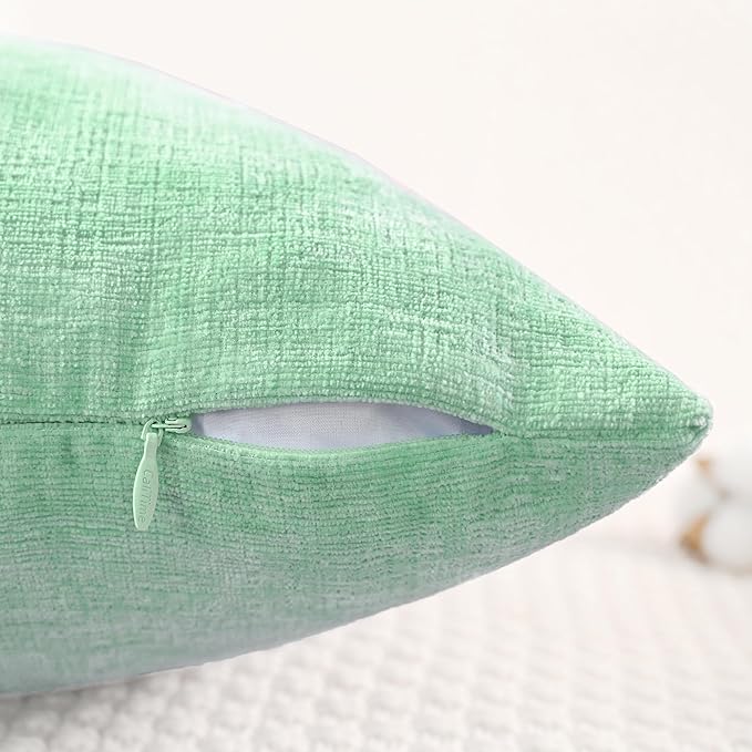 CaliTime Throw Pillow Covers Decorative 24 X 24 Inches Pack of 2 Cozy Chenille Cushion Cases for Couch Sofa Bed Living Room Home Grey Green