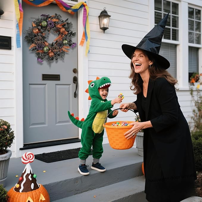 • Versatile Halloween Charm: Not just for the front door! Use this festive Pudate wreath to enhance your indoor Halloween Decorations, hang it on a wall, above the mantel, or as a centerpiece for your Halloween party. A key piece for your Outdoor Halloween Decorations (covered porch recommended)