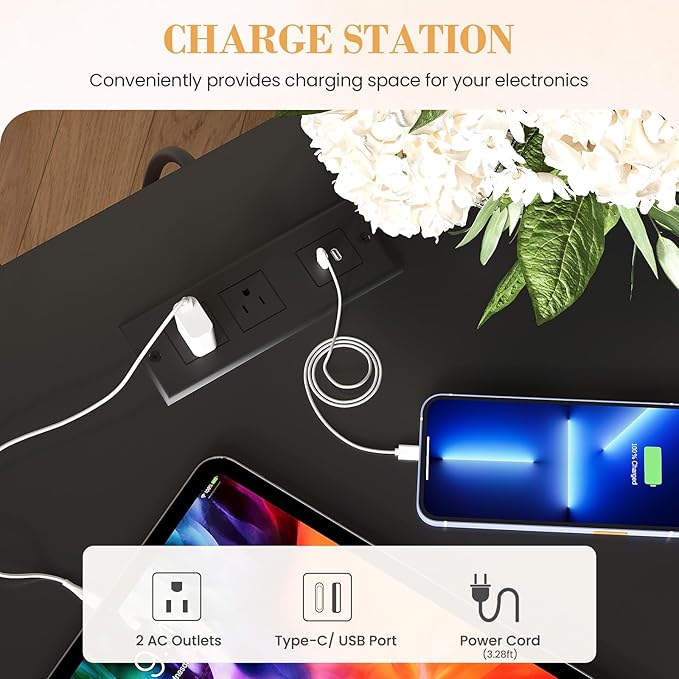 - Built-In Charging Station for Convenience: Stay powered up with the integrated charging hub: 2 AC outlets and 2 USB ports of side tables bedroom let you charge phones, tablets, lamps, and more simultaneously. Keep cables of nightstand with charging station tidy and devices of farmhouse coffee table within reachβno more scrambling for adapters or sacrificing bedside space to clutter