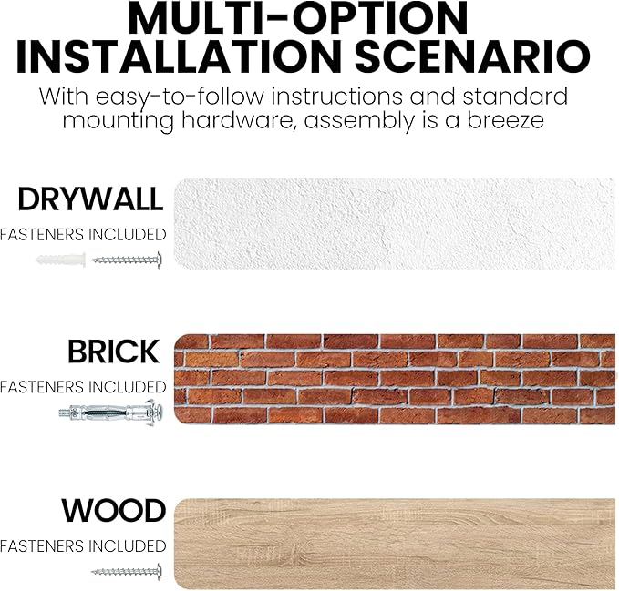 - Seamless Structural Ingenuity: Engineered for the effortless mounting of floating shelves, the integrated heavy-duty bracket system pairs with reinforced metal anchors to securely hold up to 50–80 lbs. A streamlined, bracket-free façade combined with anti-slide screws ensures polished aesthetics without compromising stability