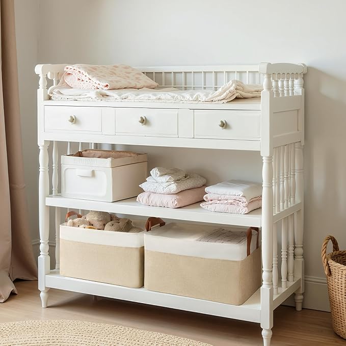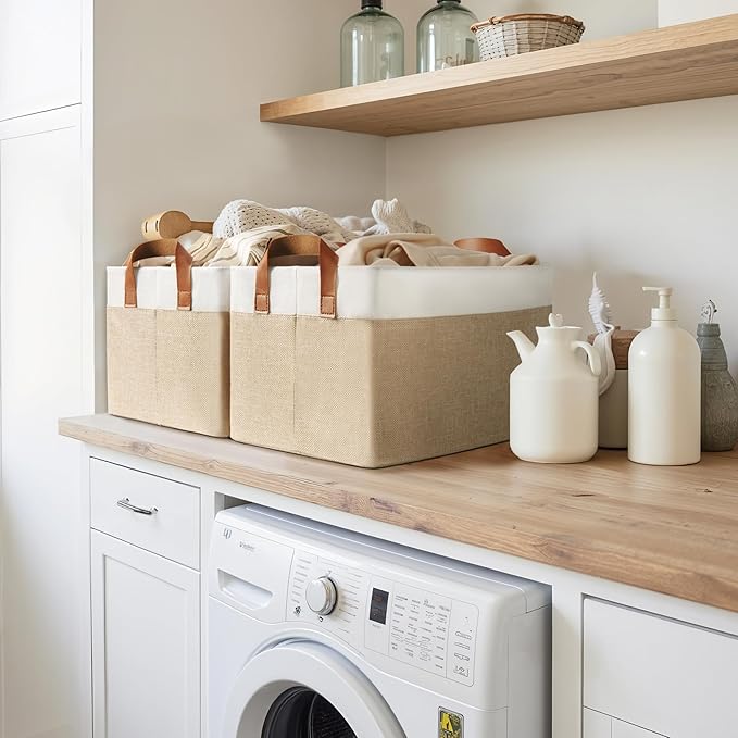 • Premium Material - These storage boxes are made of Imitation linen fabric, making them durable and easy to care for. The bottom uses thickened MDF board and can bear a load of up to 30 pounds.