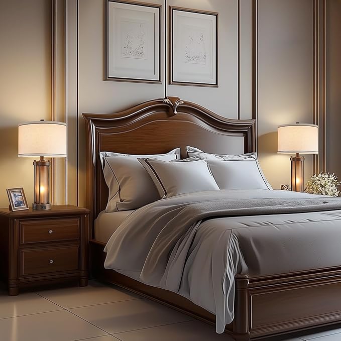 - Elegant Design: Our vintage table lamp features a brown metal base with a frosted amber glass night light, a subtle blend of rustic and classic charm, topped with a thick linen shade that softens the light and thoughtfully protects you and your family's eyesight. It blends into any dΓ©cor, whether it's farmhouse, rustic, industrial or Scandinavian vintage.