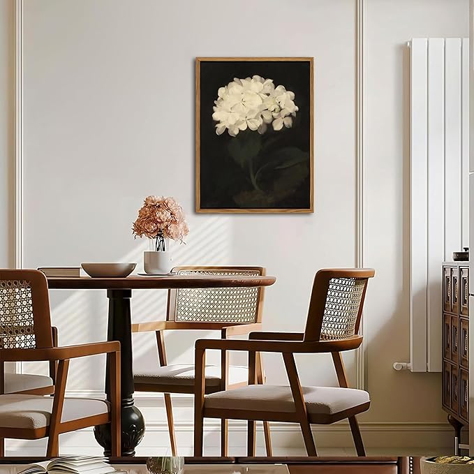 • Framed Canvas Wall Art: This vintage white hydrangea oil painting print adds a touch of botanical elegance to any room. Its classic floral design is ideal for enhancing the ambiance of your living room, bedroom, kitchen, or office with timeless charm.