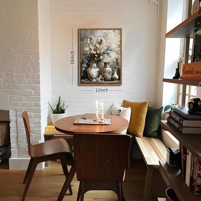 • Framed Canvas Wall Art: This vintage farmhouse floral canvas features elegant blue and white flowers in a charming art jar, capturing a timeless rustic beauty. It’s the perfect accent to enhance your living room, bedroom, bathroom, or any cozy home corner.