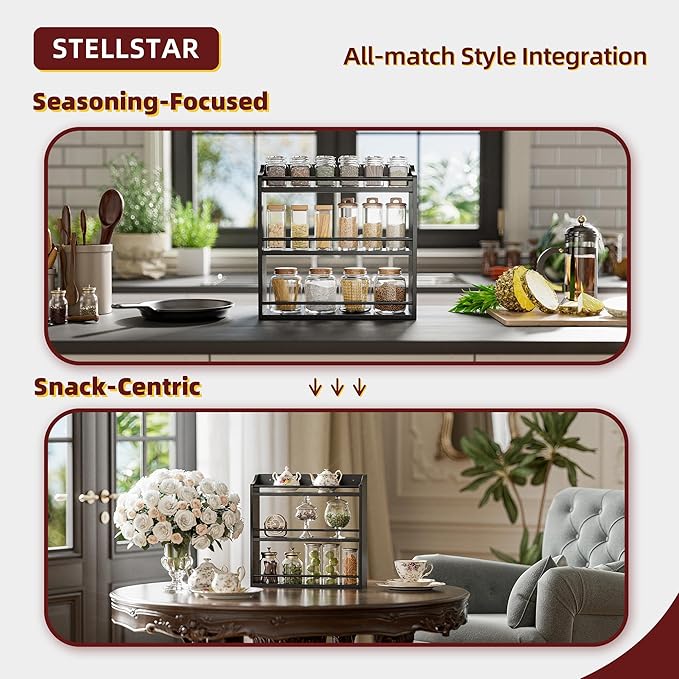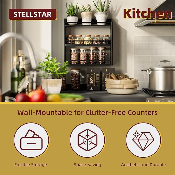 - SIMPLE, ELEGANT & VERSATILE: This rack is both a stunner and a workhorse. Its minimalist design oozes elegance, blending seamlessly with any decor to add warmth. But itâs more than a spice rack! Use it to organize your coffee bar, declutter your bathroom, or neatly stack snacks in mason jars. Wherever you place itâkitchen, pantry, bathroomâit transforms chaos into a tidy, stylish space