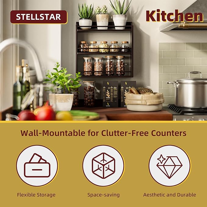- SIMPLE, ELEGANT & VERSATILE: This rack is both a stunner and a workhorse. Its minimalist design oozes elegance, blending seamlessly with any decor to add warmth. But itâs more than a spice rack! Use it to organize your coffee bar, declutter your bathroom, or neatly stack snacks in mason jars. Wherever you place itâkitchen, pantry, bathroomâit transforms chaos into a tidy, stylish space